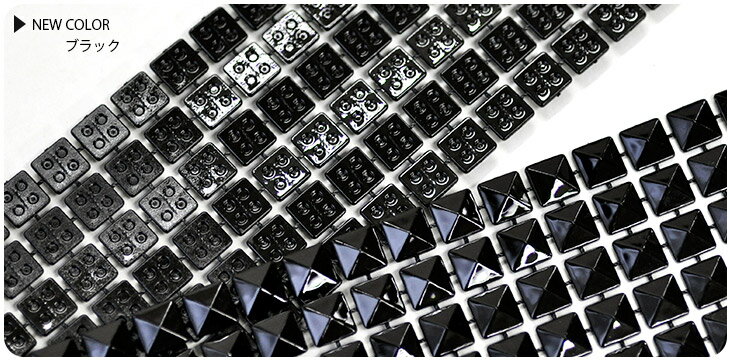 【仕様】 テープ巾: 約5.0cm (スタッズ6個分) 素材: プラスチック ※1スタッズの大きさ: 約7mm角 ※10cm分のスタッズの数: 約11.5個 【カラー】 (新色)ブラック/シルバー/ゴールド/アンティークゴールド ※1ピースごとの繋ぎ目で曲がるので袖口周りにも付けやすいですよ。
