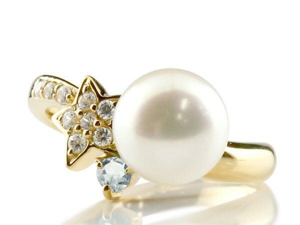 サイズ直しチケットはこちらから 材質 イエローゴールドk18(品質を保証するk18の刻印) 宝石 パール(あこや本真珠) 約 8ミリ ダイヤモンド 9石 トータル 0.09ctアクアマリン 2.5ミリ(3月誕生石) 大きさ 最大幅 約 8ミリ、最小幅 約 2ミリ *3482 もっとステキに!!もっと贅沢に!!ジュエリーのオプションはこちら 普段使いからフォーマルまで便利に使いこなせる優れもの 存在感のあるパールに天然石とメレダイヤが寄り添ったシンプルかつ上品なリング 場所を選ばずフォーマルにも普段使いにも使えます。
