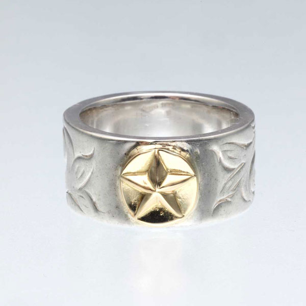 ゴールド(K18)の星(ビーナス)がインパクト大! ゴツゴツしすぎず男性にも女性にもぴったりのシルバーペアリングです。
