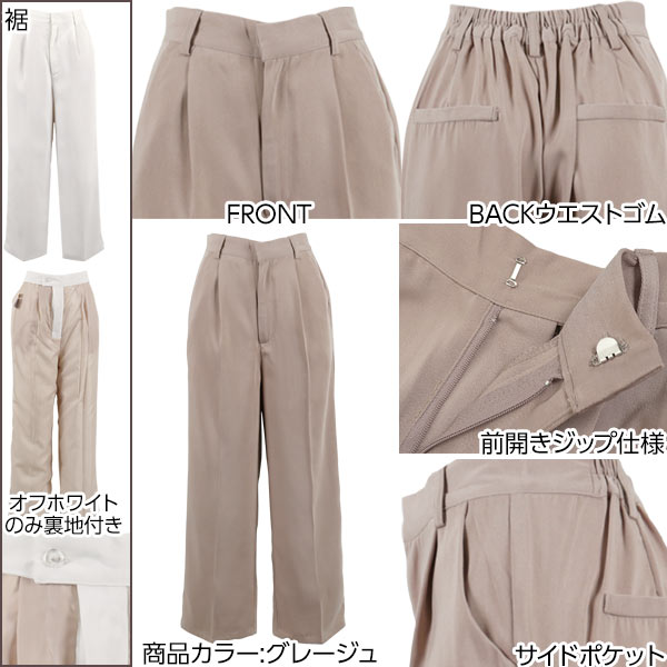 ◆MODEL(166cm:左ミント/右グレージュ着)※キャンセル/変更不可【サイズ】ワンサイズ(M)【実寸(cm)約】●ウエスト幅…30-40●ヒップ幅…48●前股上…32●股下…63●ワタリ幅…29●裾幅…25【素材】【オフホワイト】 表地・裏地 ポリエステル 100%【他5色】 ポリエステル 100%※【伸縮】なし/【淡色透け】なし/【濃色透け】なし /【裏地】オフホワイトのみあり